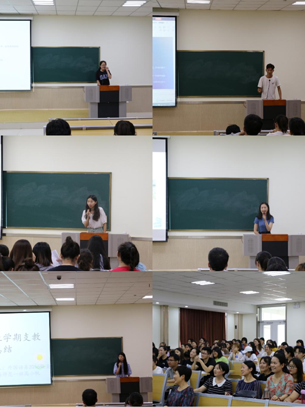随后,五位即将圆满完成实习支教任务的2016级英语师范专业优秀学生代表,分别从工作环境、生活条件以及支教意义等多个角度向同学们交流了他们的支教收获,并分享了他们实习支教的经验与感悟。