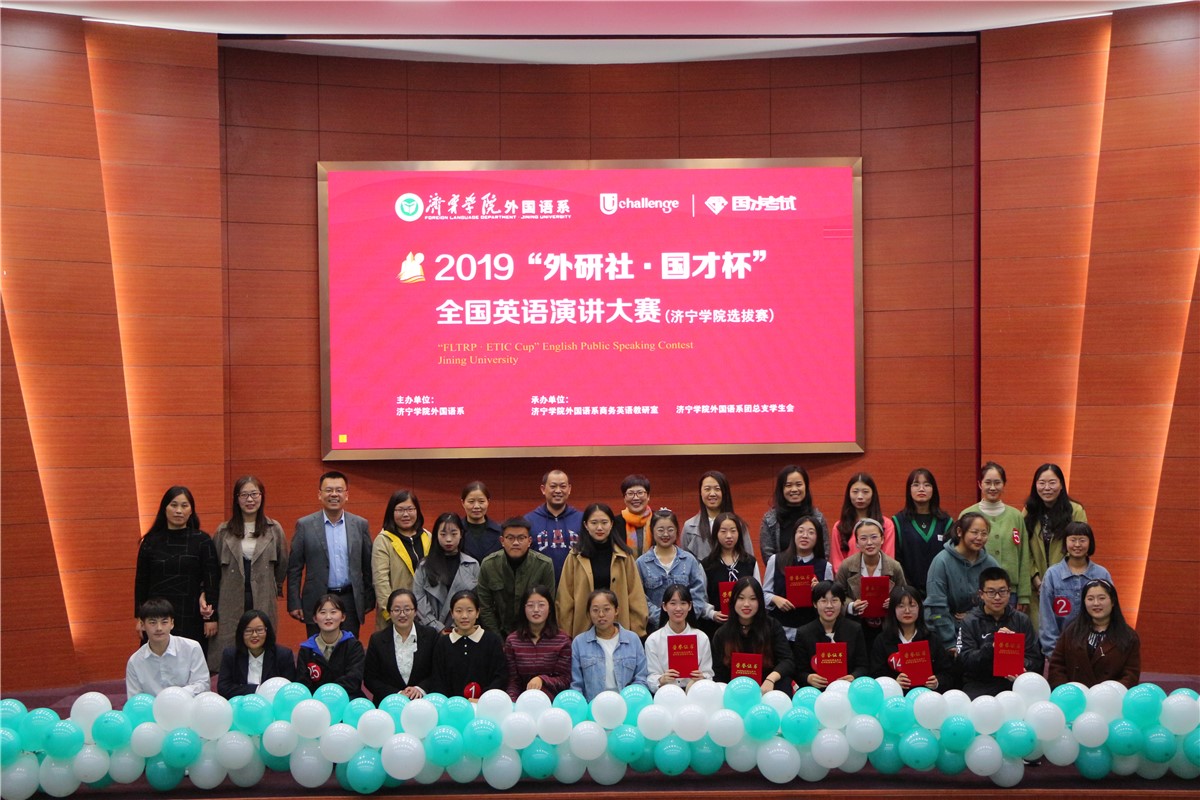 2019年10月16日晚6:30-8:30,2019年“外研社·国才杯”演讲比赛济宁学院选拔赛决赛在理科楼成功举办。外国语系主任杨楠、副主任张颖出席本次比赛,外国语系教研室主任邵敏、杨永兵和仇丽丽、孔迁迁、惠长征、王姿懿,外教Chris老师担任此次比赛评委。