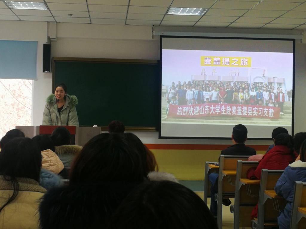 最后,顺利完成援疆支教和济宁地区支教的优秀支教生代表在会上发言。他们说要尽快适应工作岗位,要有高度的责任感,以严谨的态度虚心学习,以积极乐观的心态面对难题,学会反思,不断努力。援疆支教的同学们更是结合自己的亲身经历和真情实感激励了将要参加实习支教工作的同学,坚定了他们战胜困难、顺利完成实习支教工作的信心。