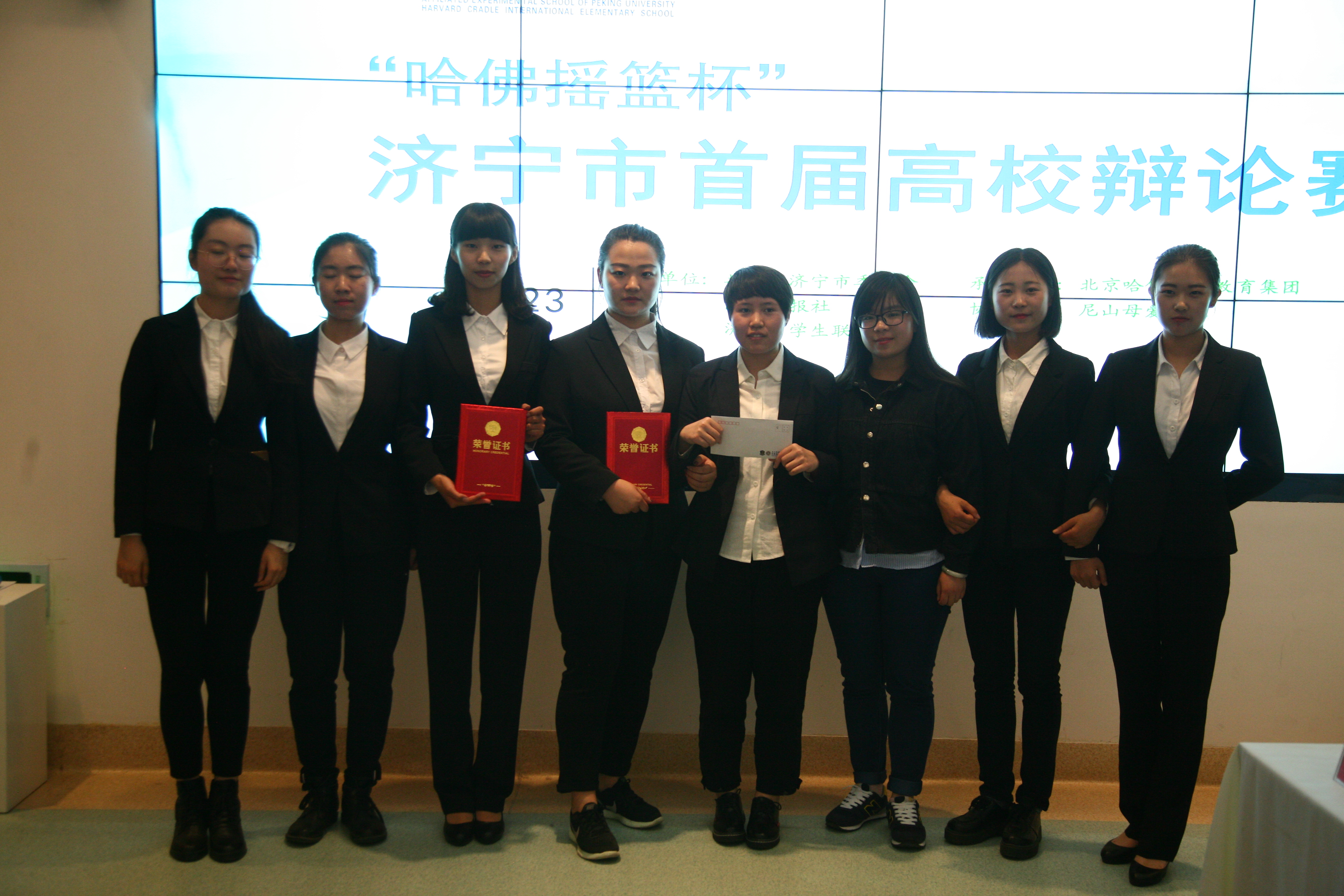 4月23日下午,由共青团济宁市委员会、济宁日报社、济宁市学生联合会主办,北京哈佛摇篮教育集团承办,尼山母爱书院协办的“哈佛摇篮杯”济宁市首届高校辩论赛于在哈佛摇篮国际小学歌德图书馆举行。我系代表我校在此次比赛中获得冠军。