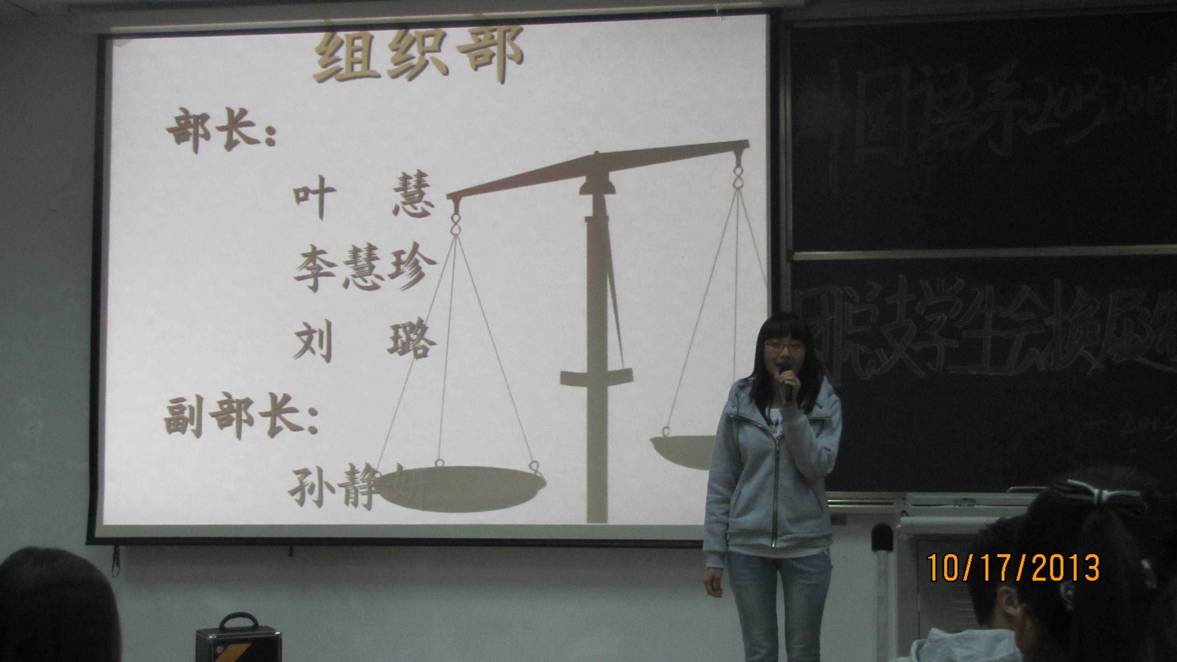 竞选主要采用演讲的方式展开。竞选的同学们满怀自信的走上讲台,激情的演讲加上美丽的PPT展示,带来的是此起彼伏的掌声。整个竞选在一种紧张激烈、而有热情愉快的的氛围中进行。最后,原团总支副书记孔晓蕾,原学生会主席杨丹凤同学和大家一起分享了任职期间的诸多感受,并鼓励大家一定要抓好学习的同时,抓好自己负责的各项工作,为我系团学工作贡献自己的力量。
