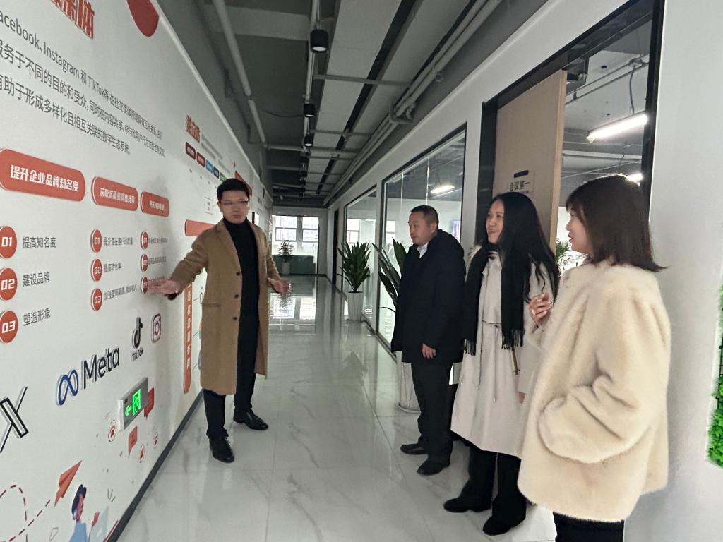 会前,陆波一行参观了齐陆集团。该公司始建于2016年,为兖州区重点企业,旗下设有山东齐陆工贸有限公司、易贸通数字化软件平台公司、易运盈(山东)网络科技有限公司等多家分公司,现已成为集供应链、贸易业务、线上营销、软件开发、平台服务为一体的综合性企业集团。近年来,集团通过创新商业模式,运用互联网+外贸的方式,在传统外贸销售方式的基础上,拓展了B2B跨境平台、谷歌独立站、海外社交媒体等数字营销渠道,实现多渠道获客、多触点精准营销。2022年集团营业总收入超过2亿元。集团致力于打造成为“连接世界,赋能跨境电商”的外贸全链路综合服务体。