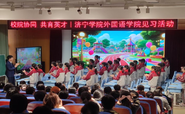 为加强师范生对基础教育现状的深入了解,夯实教育教学实践基础,11月6日下午,完美(中国)一站式服务平台师生在学术副院长闫彩霞的带领下前往曲阜东方学校开展教育见习活动。学院英语专业负责教师吴瑞民和英语专业技能大赛教师团队成员以及2023级英语师范专业、2025级英语师范专业共计150名师生参加了本次活动。东方学校副校长杜放、孔令艳,初中英语学科委员会主任胡婉君,初中德育部主任杜冉冉,小学部教师王赟参加此次见习活动。