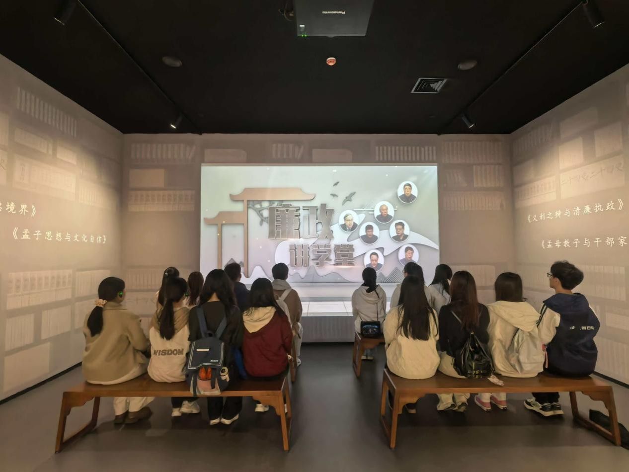在教育中心专业讲解员的细致引导下,学生党员们先后走进“千年渊薮”“百年传承”“邹鲁清风”“警钟长鸣”等特色展区。展区内,泛黄的史料文献勾勒出廉政文化的历史脉络,鲜活的影像资料再现了古今廉洁典范的感人事迹,发人深省的违纪案例则以直观的方式敲响廉洁警钟。从孔孟之乡的政德传统到新时代全面从严治党的生动实践,从先贤“修身齐家”的道德箴言到当代党员“廉洁奉公”的行为准则,多维立体的展示形式让每一位学生党员都在历史与现实的碰撞中接受了深刻的思想洗礼。