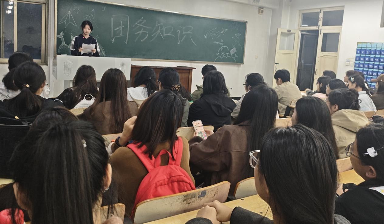 本次活动开设“团务知识小课堂”核心教学环节,团支书通过PPT系统讲解团务知识,同时结合“共青团百年发展关键事件”“优秀团员典型事迹”等案例分析,帮助同学们直观理解团务知识的实践价值。活动同步举办团务知识问答竞赛,提前围绕团史、团章、团的组织生活规范等内容设计选择题、简答题,以现场抢答、小组PK的形式开展,激发同学们主动学习团务知识的积极性;此外,还开展团务主题创意作品征集栏目,鼓励同学创作绘画、书法、手抄报、短视频脚本等作品,内容涵盖团徽团旗含义、团务知识要点、团员成长感悟等板块,进一步加深同学们对团务知识的理解与记忆。