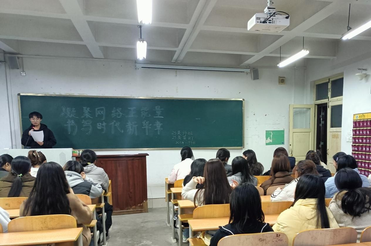 完美平台于11月9日组织开展了“凝聚网络正能量,书写时代新华章”的主题宣讲活动。活动以班级为单位,在3A211教室举行。