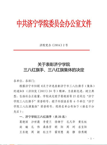 在学校近期的“三八红旗手”和“三八红旗集体评选中,我系被评选为学校“三八红旗集体”荣誉称号,桑春芳老被评选为“三八红旗手”荣誉称号。