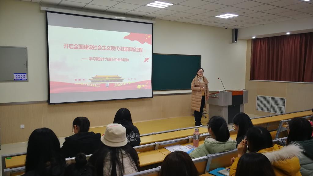赵燕分三部分对五中全会精神进行深入讲解,一是深刻认识我国进入新发展阶段的内涵要义;二是准确把握2035年远景目标和“十四五”时期我国发展的指导方针、主要目标、重点任务;三是牢牢把握构建新发展格局的战略构想和重要着力点。她结合脱贫攻坚、全面建成小康社会、疫情防控及学校发展等方面,引导同学们深刻领会新发展理念、“十四五”时期重大举措、坚持党的全面领导的根本要求。赵燕激励广大学生要做有理想、有担当、有作为的青年,经受得住新的历史条件和新的形势的考验,要将自己的人生发展同国家和民族的命运紧密联系起来。同学们表示,将深入学习贯彻十九届五中全会精神,将坚定的理想信念转化为服务国家建设发展、促进自己成长成才的鸿鹄之志与实际行动,为推动“十四五”时期我国经济社会的高质量发展、为开启全面建设社会主义现代化国家的新征程贡献青春与智慧。