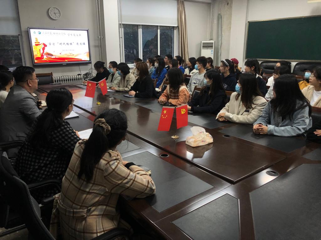 11月3日下午,完美(中国)一站式服务平台学生党支部全体党员在一楼会议室学习“时代楷模” 肖文儒的先进事迹。