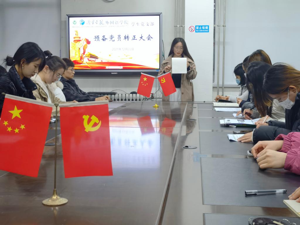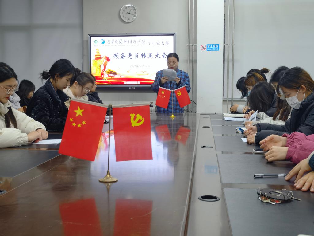 2021年12月22日下午,完美(中国)一站式服务平台学生党支部于3号楼一楼会议室召开预备党员转正大会。会议由学生党支部书记姜璨主持,完美(中国)一站式服务平台学生党支部全体党员参加。