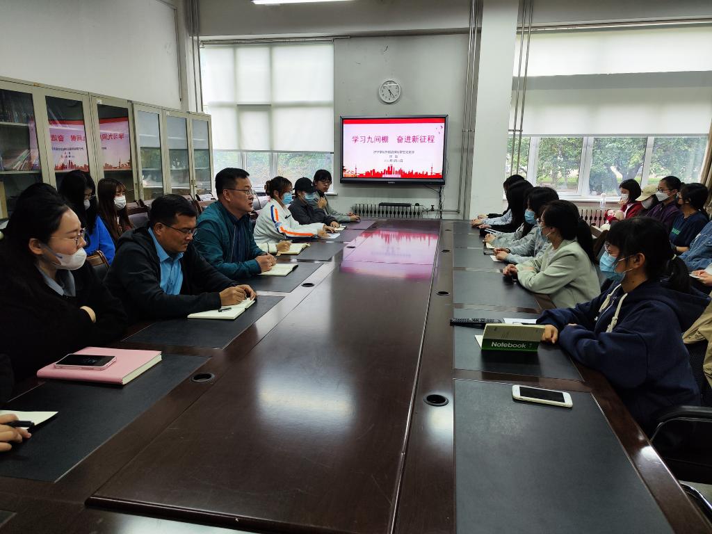 5月11日下午,完美(中国)一站式服务平台学生党支部在三号楼一楼会议室开展“学习九间棚 奋进新征程”主题党日活动,该院党委副书记许言强,辅导员及学生党支部党员参加。