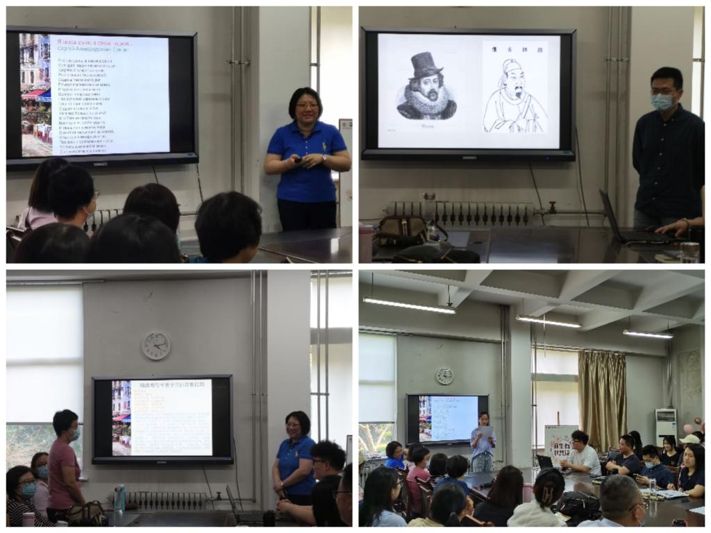 围绕传承弘扬中华优秀传统文化这一主题,俄语教师程晨、英语教师肖冠华分别作《中俄文学气质比较——以叶赛宁和陶渊明诗歌为例》、《鹏北海,凤朝阳——漫谈弗朗西斯·培根与颜之推的家庭教育观》的精彩分享。程晨老师指出,中俄文学虽有共通之处,但由于自然环境、历史进程、民族性格、宗教背景的不同,在精神内核和表达方式上仍存在着巨大差异。在对叶赛宁和陶渊明的自然诗歌进行分析的基础上,程晨谈到,我们应在立足于中国文学的同时,选择性地接纳和吸收以俄罗斯文学为代表的其他国家的文艺成就,取其精华、弃其糟粕,感受多元文化带给我们的感悟和感动。换言之,在不同中寻求相同,寻求人类共同的精神语言和情感诉求,这也是构建人类命运共同体的人文基础。来自音乐学院大学俄语班学生的俄语诗歌吟诵,更让在场师生感受到了异域文学的艺术魅力。肖冠华老师从爱吃韭菜盒子的北京冬奥会奖牌获得者谷爱凌引起的国内育儿圈焦虑作为导入,在简述《虎妈战歌》及“鸡娃”现象引起的种种争议的基础上,结合卡夫卡、纪伯伦的相关文学作品,通过对文艺复兴时期英国哲学家弗朗西斯·培根的散文《论父母与子女》和南北朝时期思想家颜之推《颜氏家训·教子篇》的比照式阅读,对传统中、西方家庭教育观中的相通之处进行了分析。他总结到,父母在处理子女教育问题时,要从五个方面着手:要亲而不狎,严而不厉;重视早期教育,做到春风化雨;顺其自然,切忌揠苗助长;不要厚此薄彼,使骨肉生隙;懂得适时放手,让子女能够独立在人生路上收获成长。随后,与会师生就如何结合外语专业学习,做好中华优秀传统文化的传播与推广展开热烈讨论。