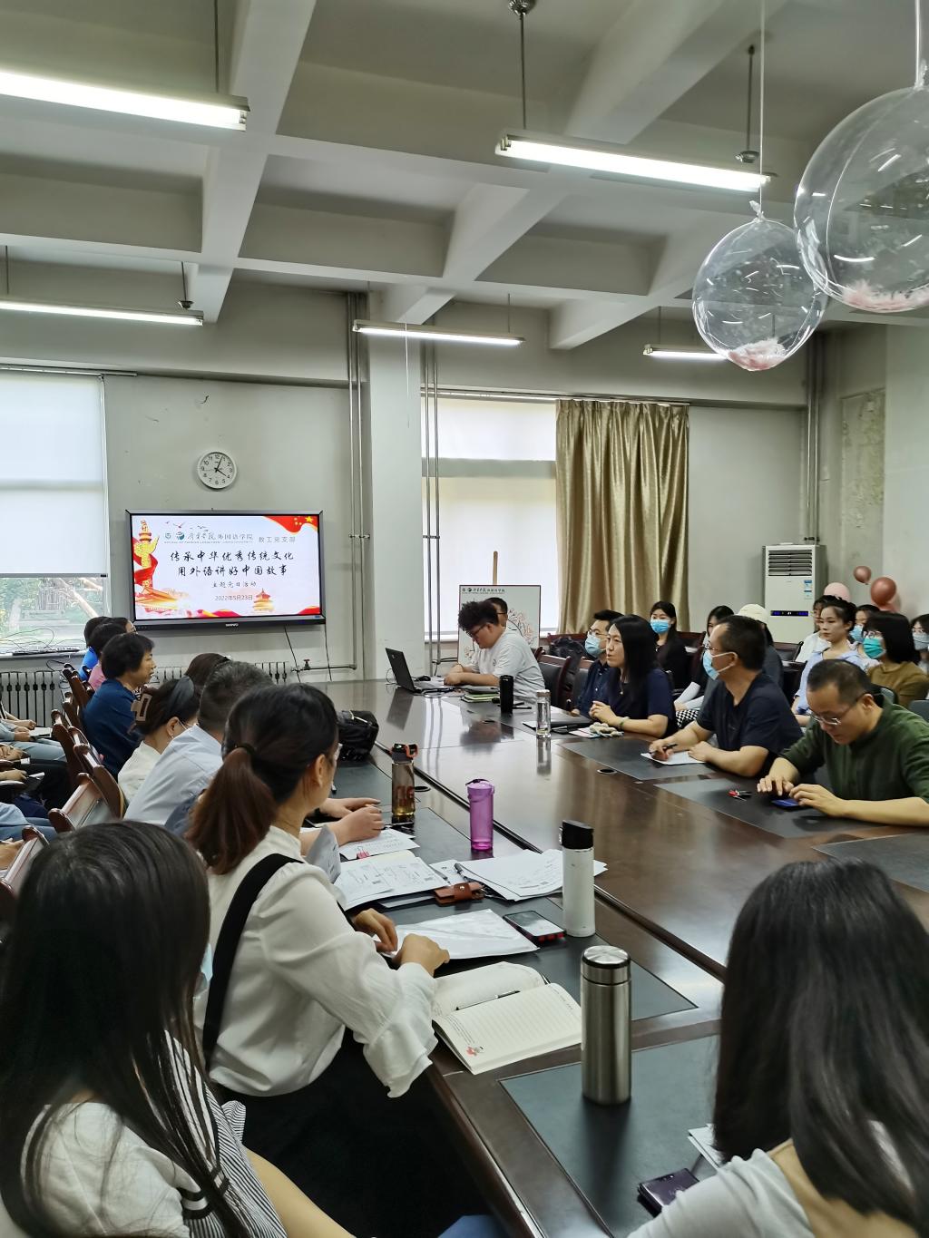 5月23日下午,完美(中国)一站式服务平台教工党支部结合教学工作实际,开展了师生有书共读第三期暨“传承中华优秀传统文化,用外语讲好中国故事”主题党日活动。完美(中国)一站式服务平台党委副书记许言强、教工党支部全体党员教师和学生代表参与此次活动,活动由教工党支部书记张颖主持。
