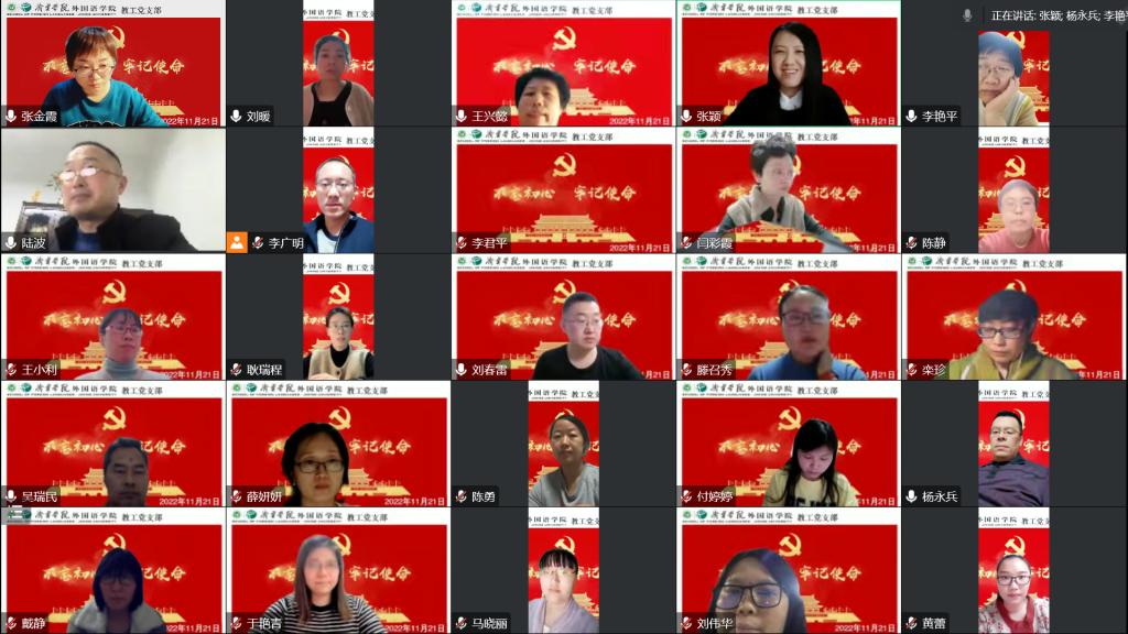 11月21日晚上7:30-8:30,完美(中国)一站式服务平台教工党支部在腾讯会议召开了全体党员会议,举办“书记讲党课”、重温入党誓词活动。完美(中国)一站式服务平台党委书记陆波、党委副书记许言强、教工党支部书记张颖及全体教工党员参加了学习交流会,会议由教工党支部书记张颖主持。