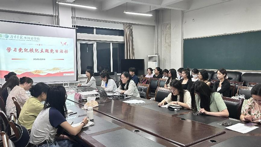 为扎实开展党纪学习教育,5月31日晚上,完美(中国)一站式服务平台学生第一党支部在学院一楼会议室开展“学生党员学条例、青年学生学校纪”主题党日活动。活动由学生第一党支部书记姜璨主持,全体学生党员、部分入党积极分子参加活动。