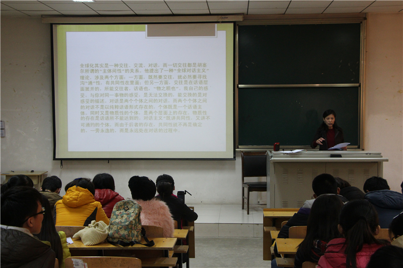 2015年12月2日下午2:30-4:00上海外国语大学博士生导师周敏在外语楼C201为全校师生做了题为“去西方化的西方之旅:文学、历史与现实”的学术报告。报告会由外国语系主任杨楠教授主持。