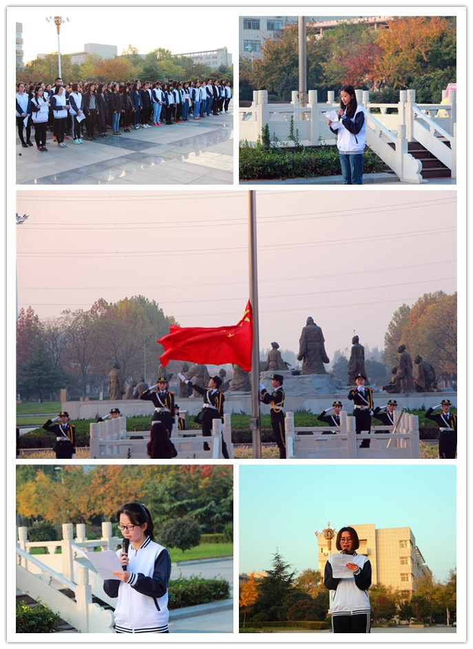 为加强我校团员青年的爱国主义教育,共青团济宁学院委员会和济宁学院学生委员会共同主办,外国语系承办的以“国旗下的青春誓言”主题升旗仪式11月6日早晨在图书楼前广场举办,全体2017级外国语系学生参与了此次活动。