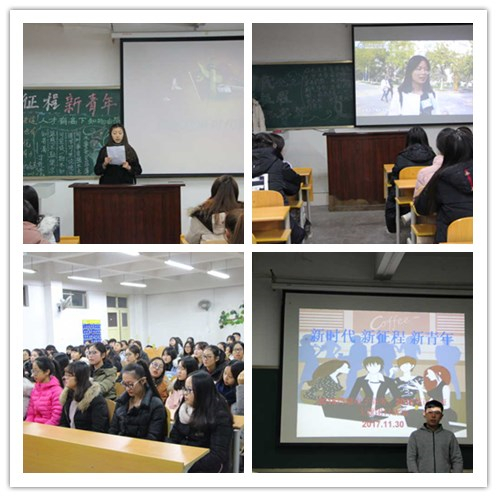 为了全面贯彻党的十九大精神,塑造新时代下的新青年,11月30日晚上7:00,由外国语系团总支主办的主题为"新时代新征程新青年"的团日活动在各班举行外国语系2016级和2017级全体学生参与了此次团日活动。