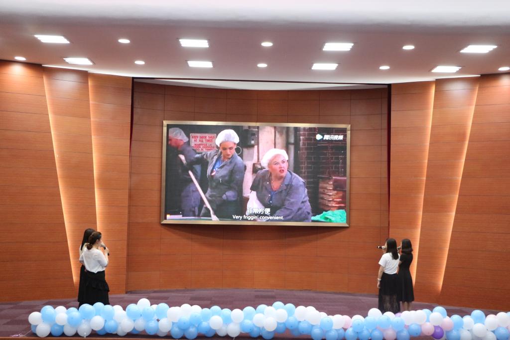 经过学生们的精心准备,比赛拉开序幕。首先,主持人致开场词。各小组选取一些英文经典电影进行配音,每组选手都尽心融入剧情角色,配音时不仅英语口语地道,语言模仿也称得上惟妙惟肖。观众们也在观看影片和聆听配音中,享受了一场听觉上的饕餮盛宴。经过两轮的角逐,评委进行了细致的点评。最终,张晓智等四名同学获得一等奖,王璐瑶等五名同学获得二等奖,张琴等四名同学获得三等奖,朱勉等三名同学获得优秀奖,张萌同学获得最佳口语奖。最后,主持人宣布此次配音大赛决赛圆满成功。