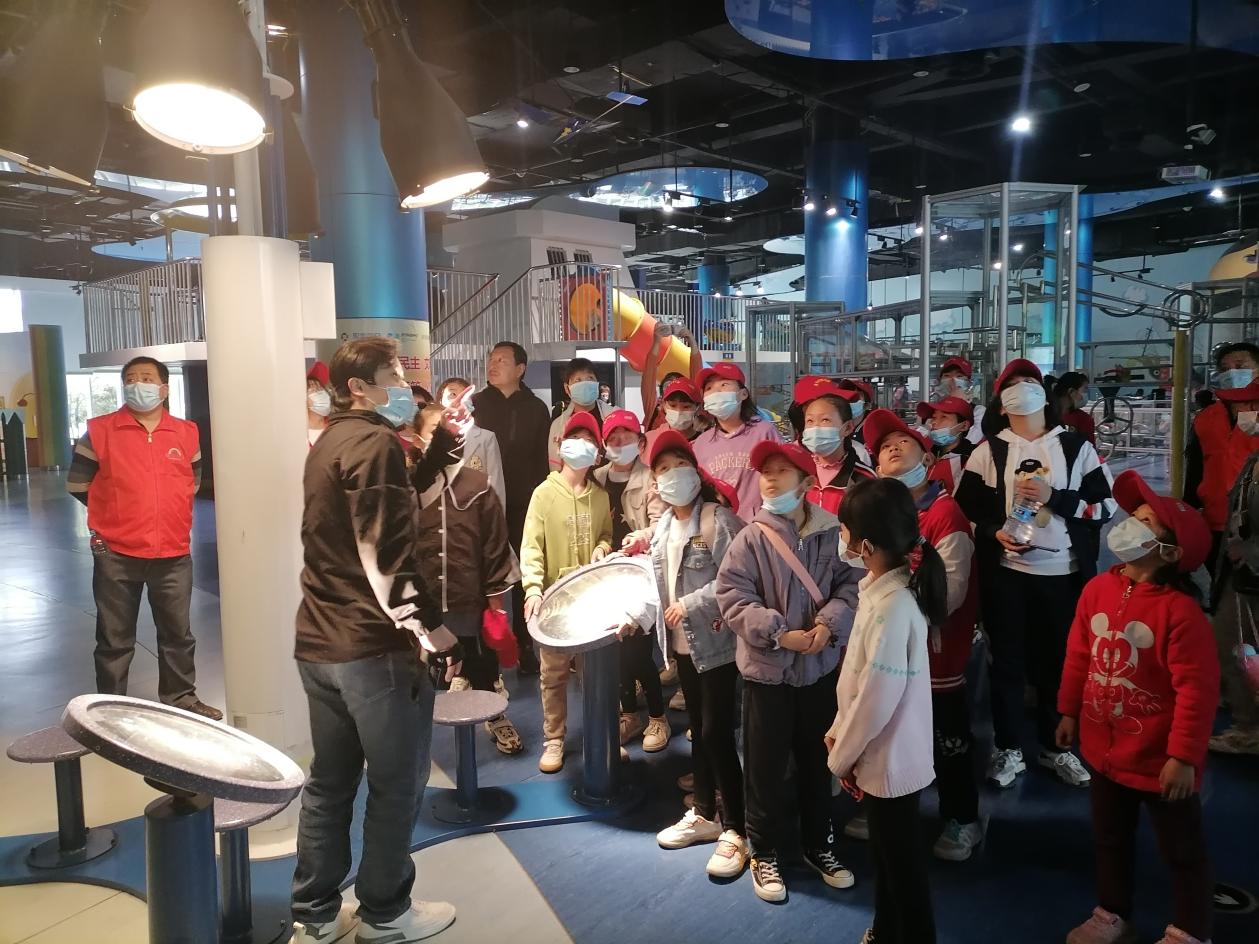 午餐短暂休息,志愿者们和孩子们到达济宁科技馆。在解说员指引下参观了一层儿童科学乐园,园内主要展示了人体五官,森林航海探秘等科学知识。紧接着到二层启迪智慧展厅,主要展示关于电磁学、力学等科普知识。又到三层文明生活展厅,厅内展示了人类生活对身体健康的影响及生态环境对人体健康影响的知识。最后到四层和谐未来展厅,厅内展示了环保低碳的重要性、未来科技以及畅想济宁未来。孩子们在园内知识的海洋遨游。