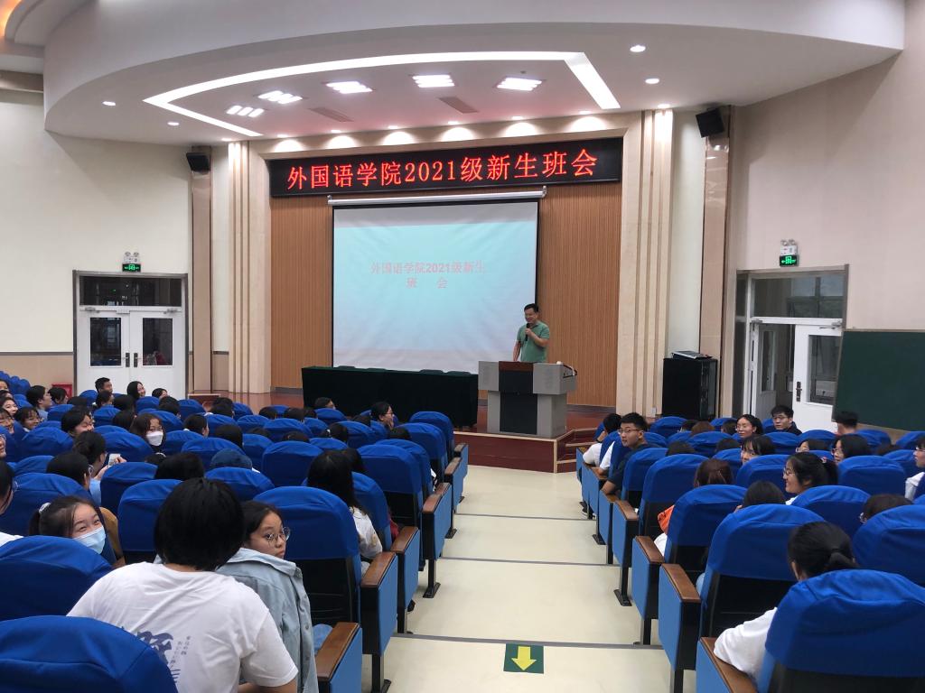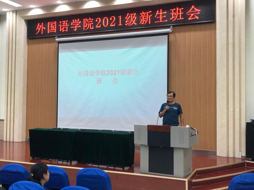 许言强对新生加入外国语大家庭表示热烈欢迎,他表示,作为新时代的大学生,要永远听党话、跟党走,要求同学们 “对共产主义坚定不移,对中国特色社会主义道路坚定不移,牢记自己的初心与使命。”随后,他寄语全体新生要脚踏实地奋斗,做好人生规划,不负国家期盼,以更加饱满的热情、更加认真的态度去读书,做有担当的青年人。他强调,要严格遵守校规校纪,特别是在疫情防控期间,一定要落实学校防疫要求,做好自我防护。