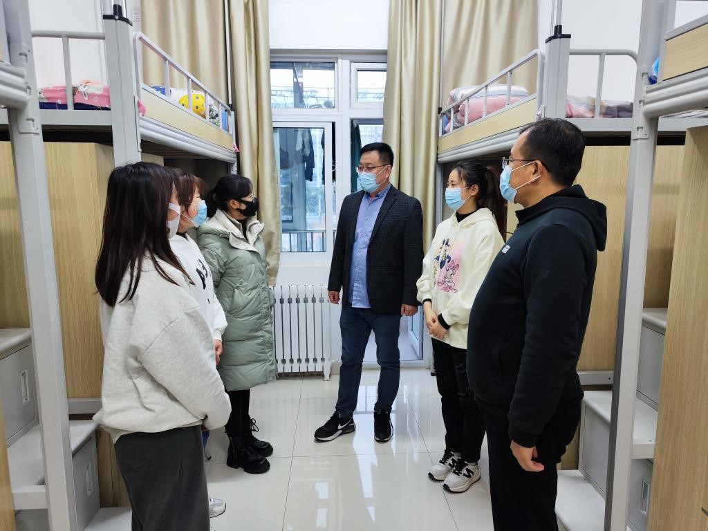 3月16日晚,完美(中国)一站式服务平台党委副书记许言强和辅导员深入学生宿舍了解近期学习、生活及思想状况。