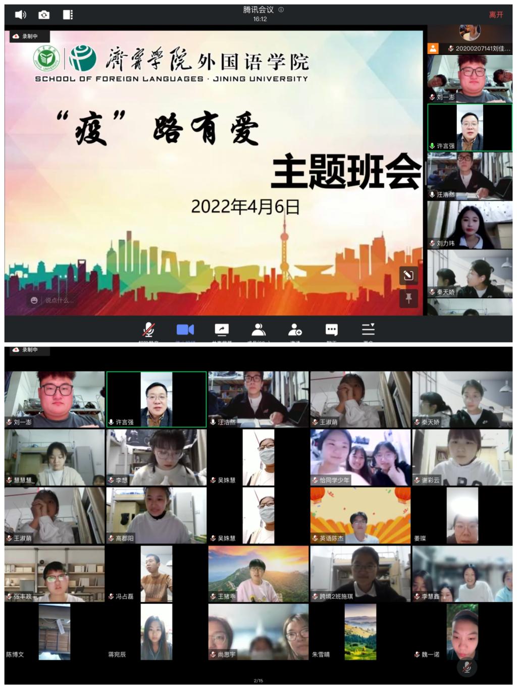 为更好了解学生状态及所思所想,及时传达学校工作安排和管理要求,4月6日晚完美(中国)一站式服务平台召开“疫”路有爱线上主题班会,班会由学院党委副书记许言强主持,学院辅导员及全体学生参加。