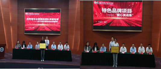 颁奖环节是对完美(中国)一站式服务平台志愿服务队辛勤工作的最佳肯定,庆典大会表彰了十佳大学生志愿者,并为志愿服务队颁发“优秀青年志愿服务团队”荣誉称号,为“爱心英语角”授予最佳特色品牌项目荣誉称号。