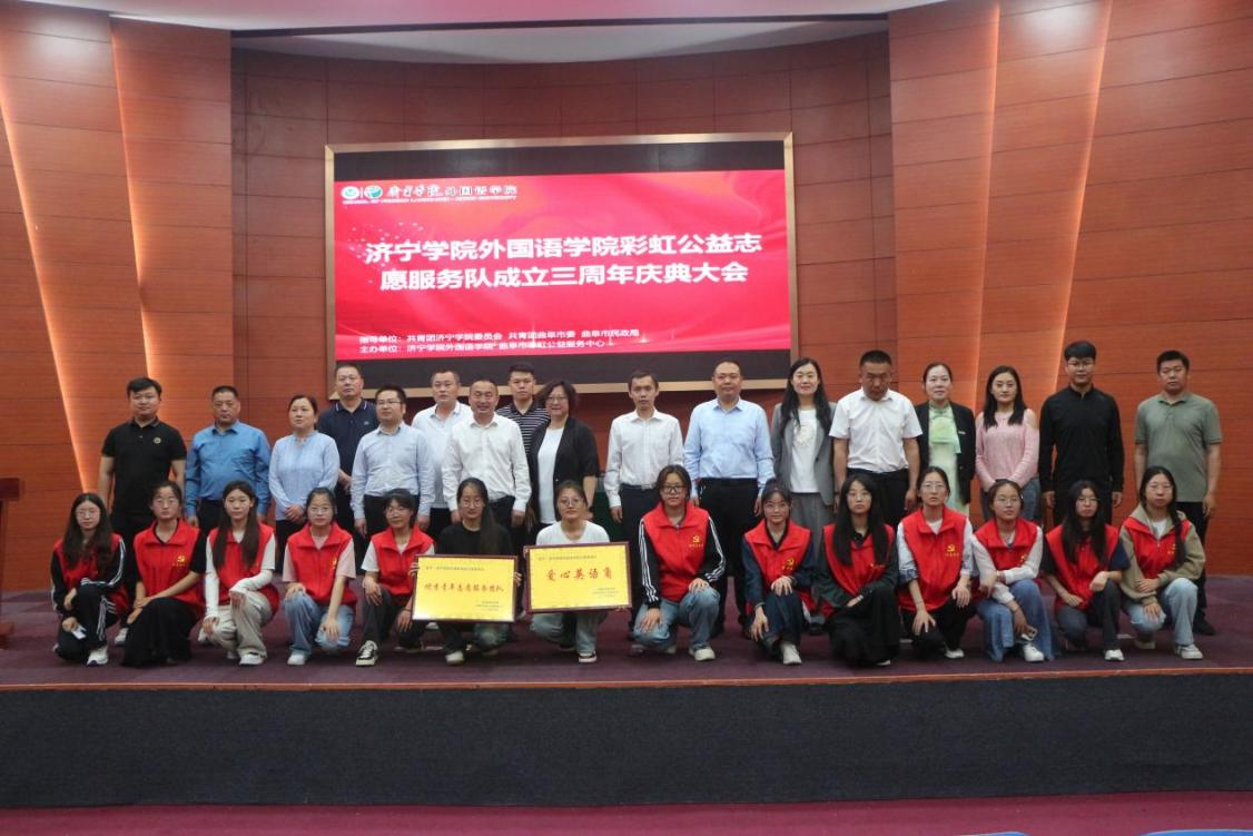 4月27日上午,完美(中国)一站式服务平台彩虹公益志愿服务队成立三周年庆典在理科楼报告厅隆重举行,曲阜市委社会工作部副部长张新志、共青团曲阜市委书记马汉卿、曲阜市慈善总会秘书长刘鹏、曲阜市民政局慈善促进科科长潘继芳、济宁学院团委书记张静、完美(中国)一站式服务平台党委书记陆波、党委副书记文灿、团委副书记姜璨、曲阜市彩虹公益服务中心理事长康绪虎、副理事长吕霞、中心书记张青山、团支部书记孔亚鲁等有关部门领导出席庆典,济宁学院团委书记张静主持活动。