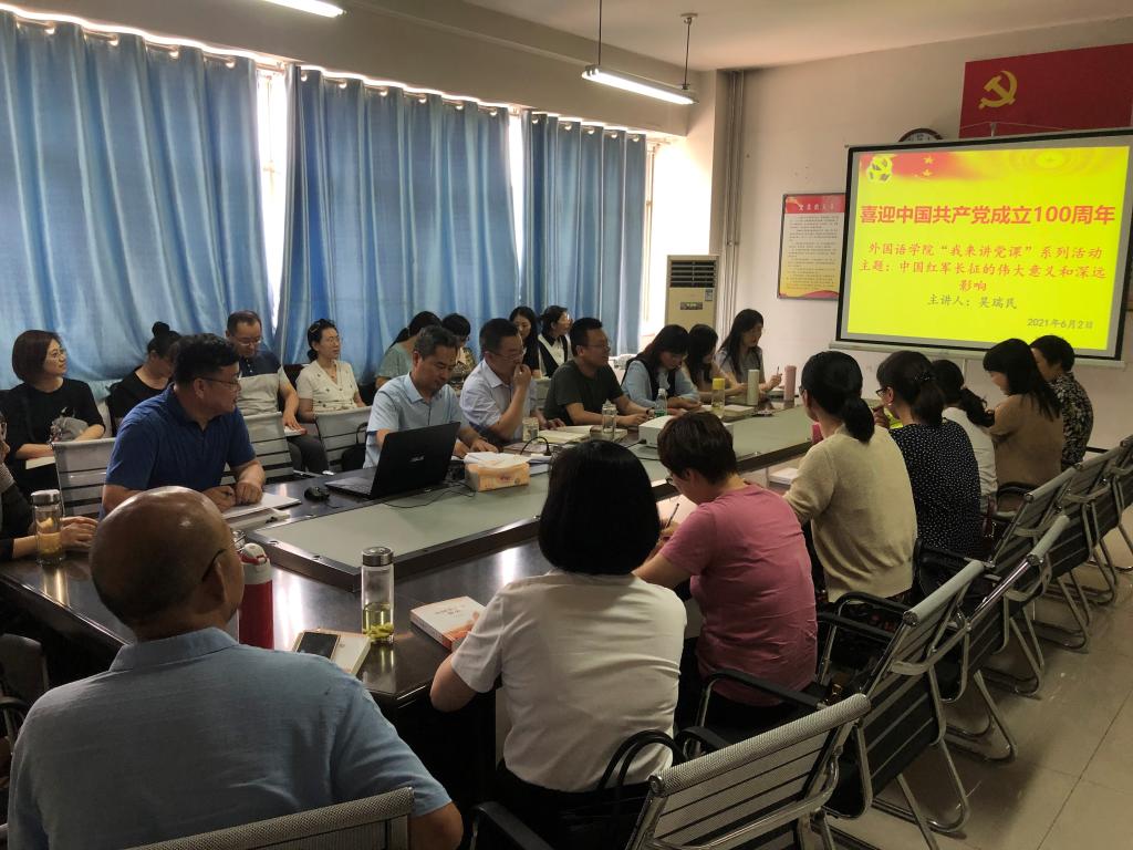 知识竞赛活动结束后,教工党支部书记吴瑞民老师为大家上了党课,题为“中国红军长征的伟大意义和深远影响”,带领大家回望80年前那段苦难和辉煌,我们更加深刻地认识到,长征在我们党、国家、军队发展史上具有十分伟大的意义,对中华民族历史进程具有十分深远的影响。