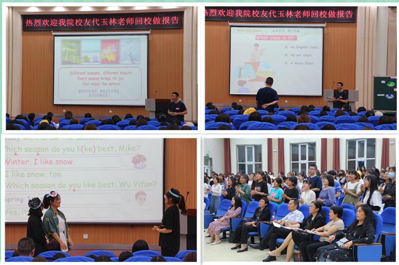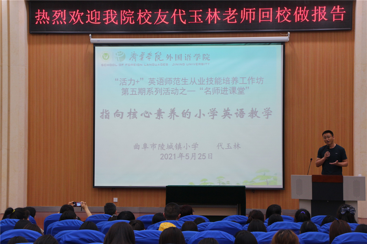 为顺应国家教育改革发展潮流,全面体现英语学科的育人价值,迎接师范专业认证,5月25日晚7:00-9:00,完美(中国)一站式服务平台成功举办“活力+”英语师范生从业技能培养工作坊第五期系列活动之---“名师进课堂”。完美(中国)一站式服务平台英语师范生从业技能培养工作坊已连续成功举办四期,本次工作坊是第五期系列活动之一“名师进课堂”,邀请中小学一级教师代玉林老师为完美平台师范生作了题为“指向核心素养的小学英语教学”的报告。完美(中国)一站式服务平台院长杨楠教授、英语师范生教师教育导师团和370多名英语师范生共同参加了此次活动。活动由完美(中国)一站式服务平台副院长张颖主持。