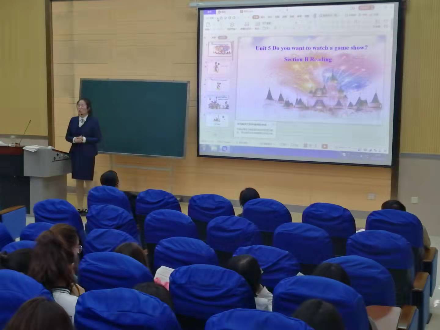 2021年10月26日晚,我院邀请到了曲阜东方学校杜冉冉主任,于6:30-9:00在2号楼B101为外院师生作了题为“英语教学设计”的讲座。东方学校副校长杜放、我院院长杨楠、教学秘书栾珍、英语师范生教师教育导师团以及2019级、2021级专升本英语师范专业学生近两百余人参加了此次活动。
