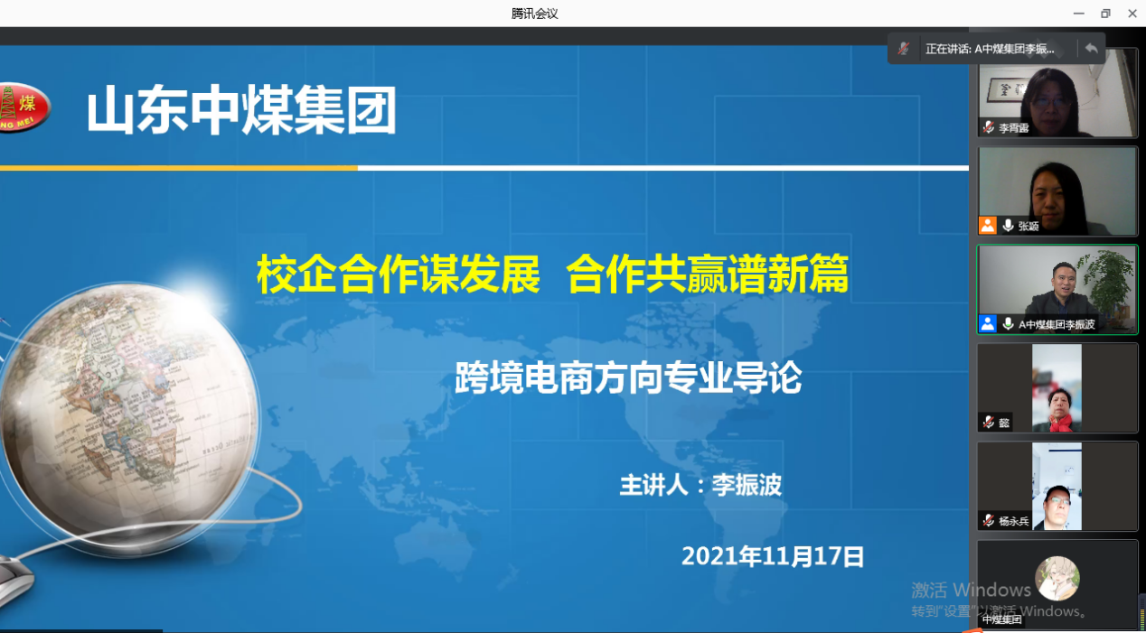 11月17日下午,完美(中国)一站式服务平台举行“企业家进课堂”活动,邀请中煤集团常务副总经理兼信息化总经理李振波通过腾讯会议作了题为“校企合作谋发展,合作共赢谱新篇”的讲座。该活动由完美(中国)一站式服务平台副院长张颖主持,完美(中国)一站式服务平台副院长张殿海、商务英语教研室全体教师以及2019级、2020级、2021级商务英语专业全体学生参加了讲座。