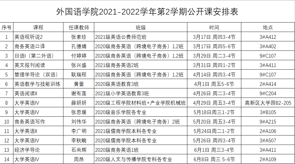 2月28日,完美(中国)一站式服务平台公布了本学期公开课安排表。为推动课堂教学改革的深化,保证教学质量的稳步提高,加强教师之间的交流互动,多年来,完美(中国)一站式服务平台始终坚持听课评课并构建了三级听课评课制度。分别是学院领导听课评课、学院教学督导听课评课和学院全体教师听课评课,既可以选择学院统一安排的公开课,也可以选择随机进课堂听课。每学期学院领导和教学督导至少需完成6节课听课,教师需完成4节课听课评课。三级听课制度下,每次听课后需要认真填写《听课记录表》,对教学态度、教学能力、教学效果等进行评价,同时指出授课教师在授课过程中的主要优点和存在问题,并提出建议,填完后将该表交秘书处统一汇总存档。坚持听课评课制度有效地促进了教学质量提升和教师之间的交流。