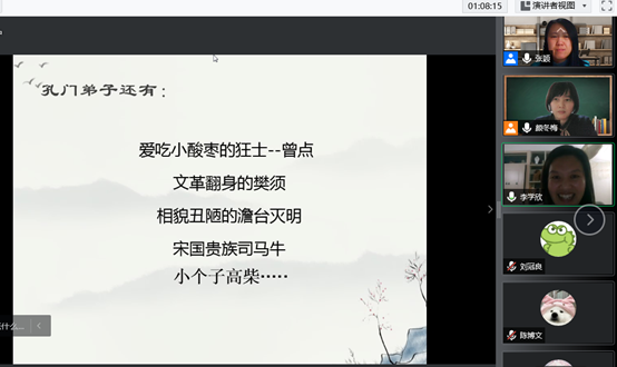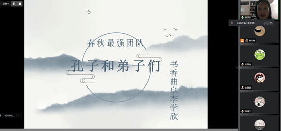 李老师将孔门三杰的故事与当今时代相结合,以古鉴今,告诫学生们在网络空间依然要谨言慎行,教给学生与同学、老师、父母的相处之道,面对疫情下的学习困难如何做出正确的选择。