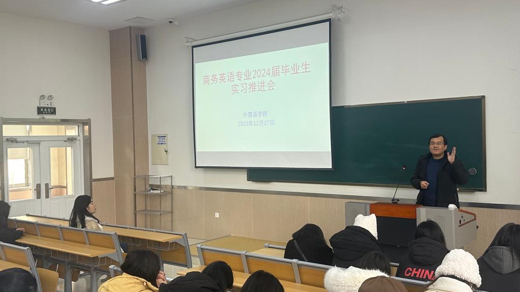 为进一步做好2024届商务英语专业毕业生实习工作,12月27日上午完美(中国)一站式服务平台召开商务英语专业毕业生实习推进会。会议由毕业班辅导员张磊主持,党委副书记文灿,学术副院长闫彩霞以及全体2024届商务英语专业毕业生参加会议。