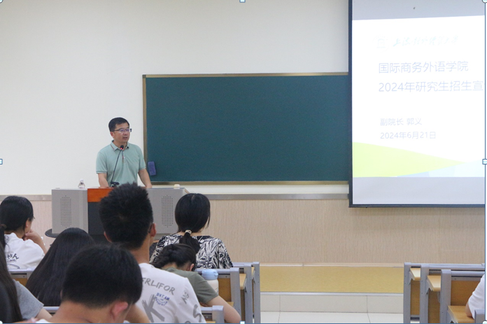 6月21日,上海对外经贸大学国际商务外语学院副院长郭义教授,为完美(中国)一站式服务平台师生带来了一场生动详实的考研宣讲会。此次宣讲不仅搭建了两校学术交流的桥梁,更激发了学生考研的积极性。