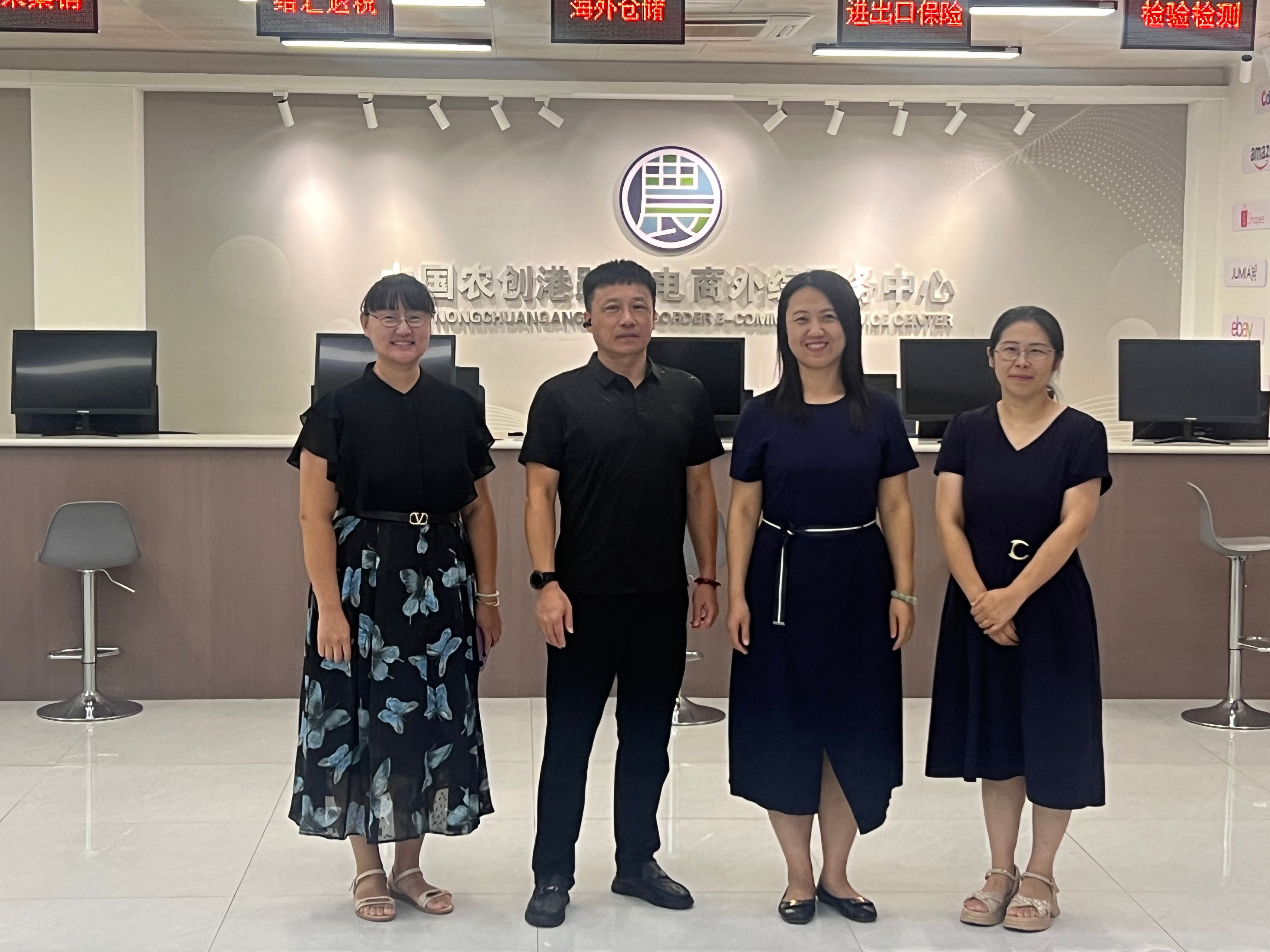 8月26日,张颖与商务英语教研室主任李霄露、骨干教师马晓丽前往中国农创港(济宁)跨境电商产业园有限公司调研。公司负责人易筱龙热情接待学院一行并陪同参观。