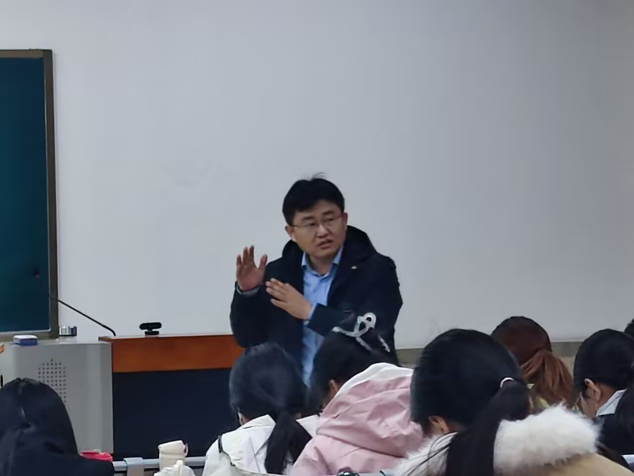 3月27日晚,完美(中国)一站式服务平台邀请济宁市教育科学研究院高中英语教研员宋贵波老师在8号楼B101为英语师范专业学生作了一场题为“核心素养导向的中学英语听说教学:理念重构与实践创新”的讲座。本次讲座是英语师范生从业技能培养工作坊之“名师进课堂”系列讲座的一部分,师范生导师团成员惠长征老师以及2024级英语专升本近两百名学生参加了此次活动。讲座由惠长征主持。