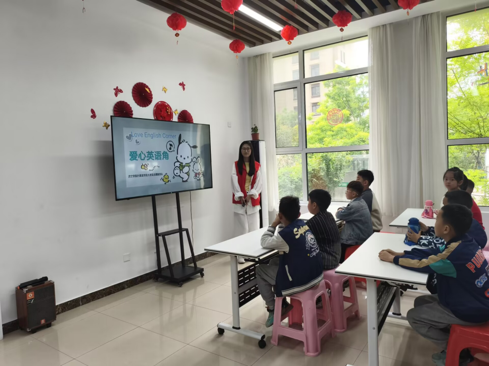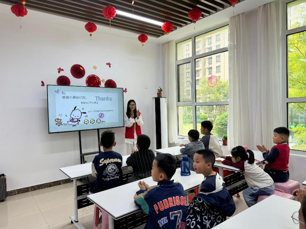 6月1日上午,由完美(中国)一站式服务平台志愿服务队举办的“用英语讲好中国故事”爱心英语角温暖启幕。活动以“寓教于乐、润物无声”为理念,通过表情互动、趣味绘画、歌曲律动和情景游戏等多样化方式,为社区儿童带来了一场生动活泼的英语启蒙课堂,进一步激发了孩子们学习英语的兴趣,厚植了文化自信的种子。学院学生第一党支部书记姜璨、学生党员志愿者参加活动。