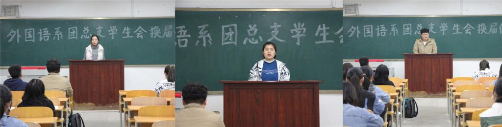2020年10月15日晚19时,外国语系在3号楼211教室成功举行2020届团总支学生会换届大会,新一届团总支学生会干部参加。