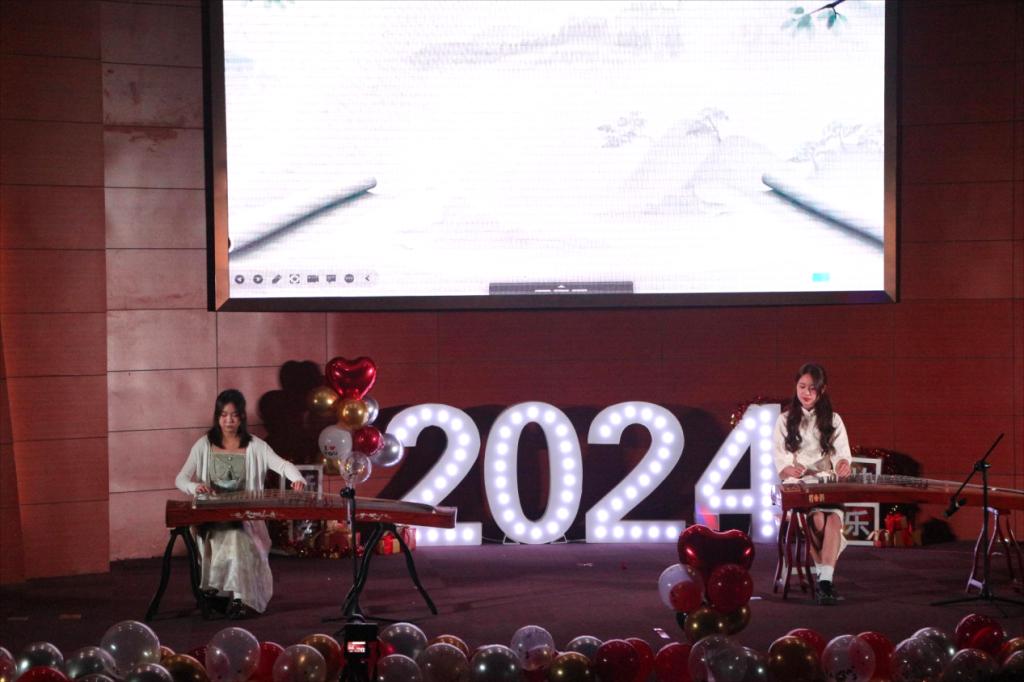 晚会中还特别安排了两位学生的古筝演奏。这一演出不仅展现了学生们中国传统音乐的精湛技艺,更向在场的师生和嘉宾展示了中华优秀传统文化的独特魅力。