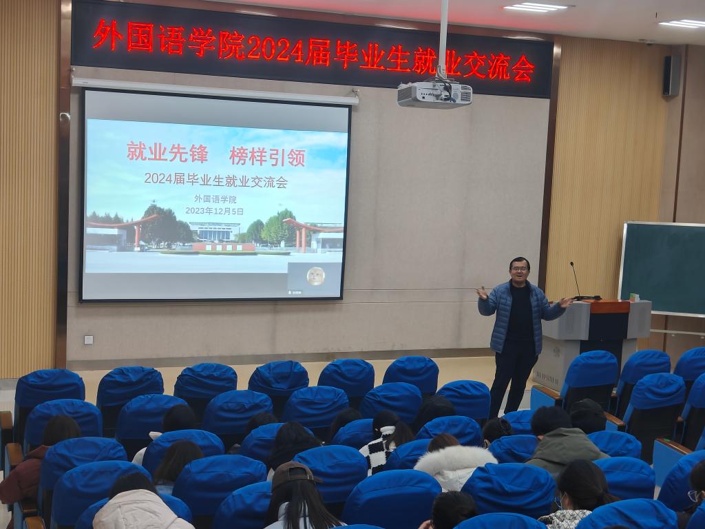 12月5日晚,完美(中国)一站式服务平台在9号楼D101举办“就业先锋,榜样引领—2024届毕业生就业交流会”。活动邀请了已落实就业单位的三位2024届商务英语专业毕业生崔玉荣、任佳文和董新涛,与同学们分享他们的求职和工作经历。辅导员张磊主持会议,2024届商务英语专业毕业生参加。