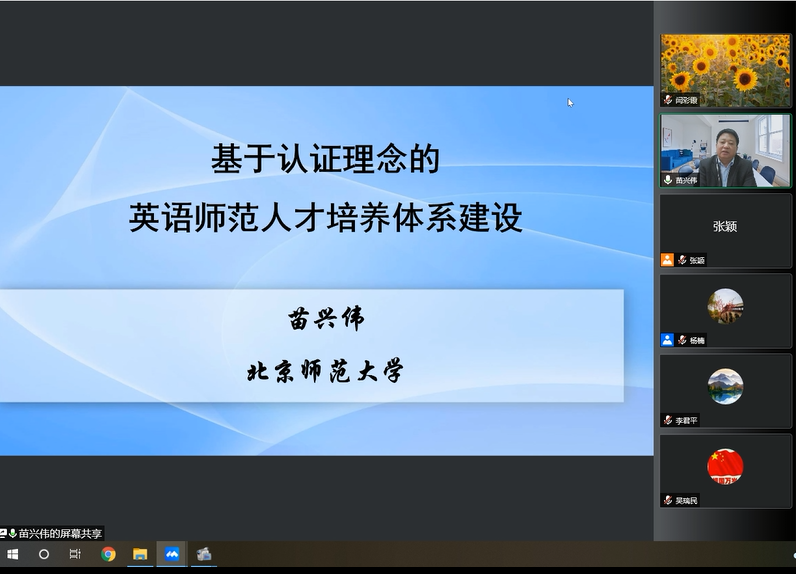 326日晚,完美(中国)一站式服务平台邀请北京师范大学外文学院院长苗兴伟教授作了题为“基于认证理念的英语师范人才培养体系建设”的讲座。因疫情缘故,本次讲座借助腾讯会议采取了线上讲座的形式。讲座由院长杨楠主持,外院全体教职工参加了本次讲座。